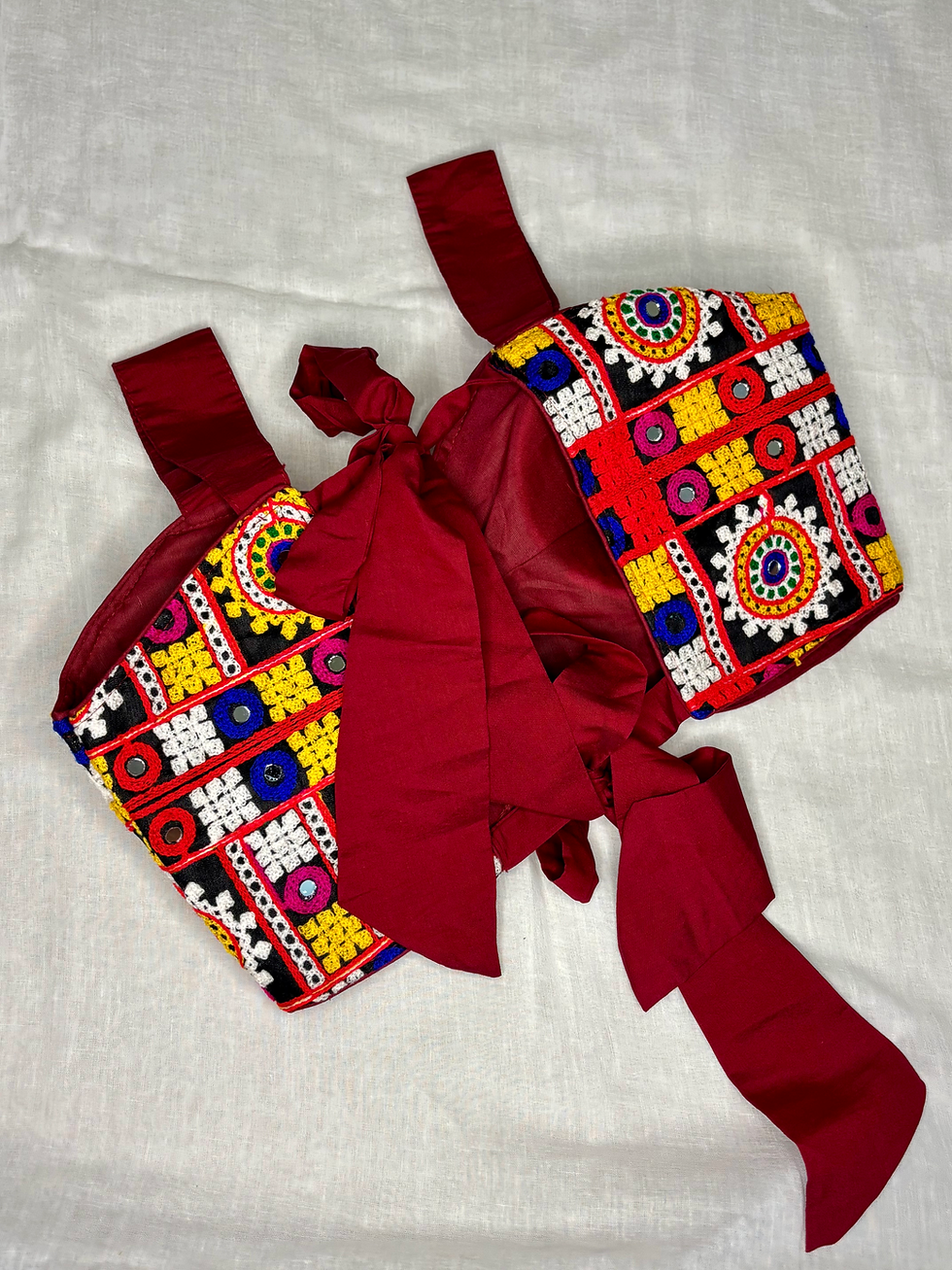 Maroon Multicolor Embroidered Dupatta with Mirror Work